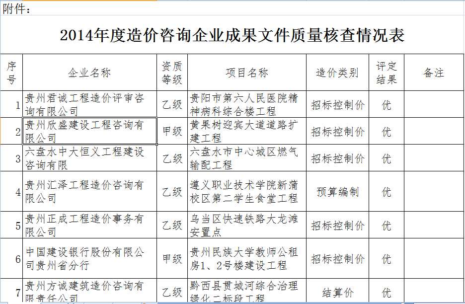 热烈祝贺我司报送贵州省住房和建设厅核查的2014年成果文件被评为优秀。